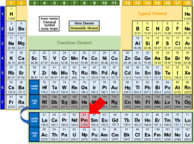 The element name promethium, with atomic number 61, is derived from Prometheus, the god of fire in Greek mythology. Promethium does not occur naturally and is separated from the fission products of uranium using ion exchange resin. Ion exchange was also a technology that played a part in the development of atomic bombs using uranium.
