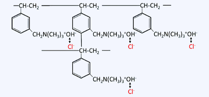 | Strongly basic anion exchange resin | Quaternary amine Trimethylammonium group (Type I) | ![]() |