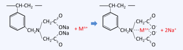 In addition to cation exchange resins and anion exchange resins, there are chelating resins that have functional groups introduced to form chelates with metal ions.